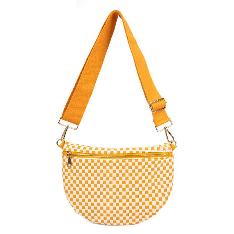 Introducing the Fiona, our exquisite woven leather bum bag with an adjustable strap. Crafted with meticulous attention to detail, this stylish bag blends timeless elegance with modern functionality. The intricate weaving technique showcases the beauty of vegan leather, creating a stunning visual texture that is both luxurious and eye-catching. Designed for versatility, the adjustable strap allows you to wear the bag comfortably across your body or over your shoulder, adapting to your preferred carrying style. The high-quality hardware ensures durability and adds a touch of sophistication to the overall design. This sling bag offers ample storage space while maintaining a sleek and compact profile.